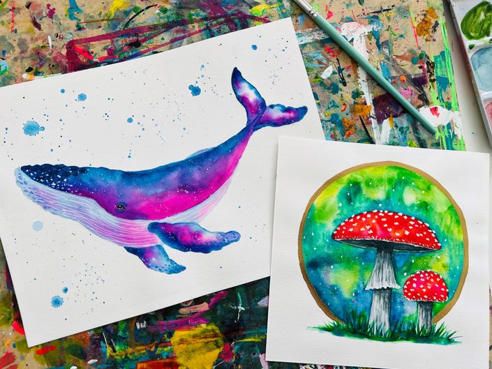 My latest class, Watercolor Sea Creatures, explores 6 different ocean animals. I walk you through everything from using reference photos and line drawings, to creating magical compositions with different background styles.